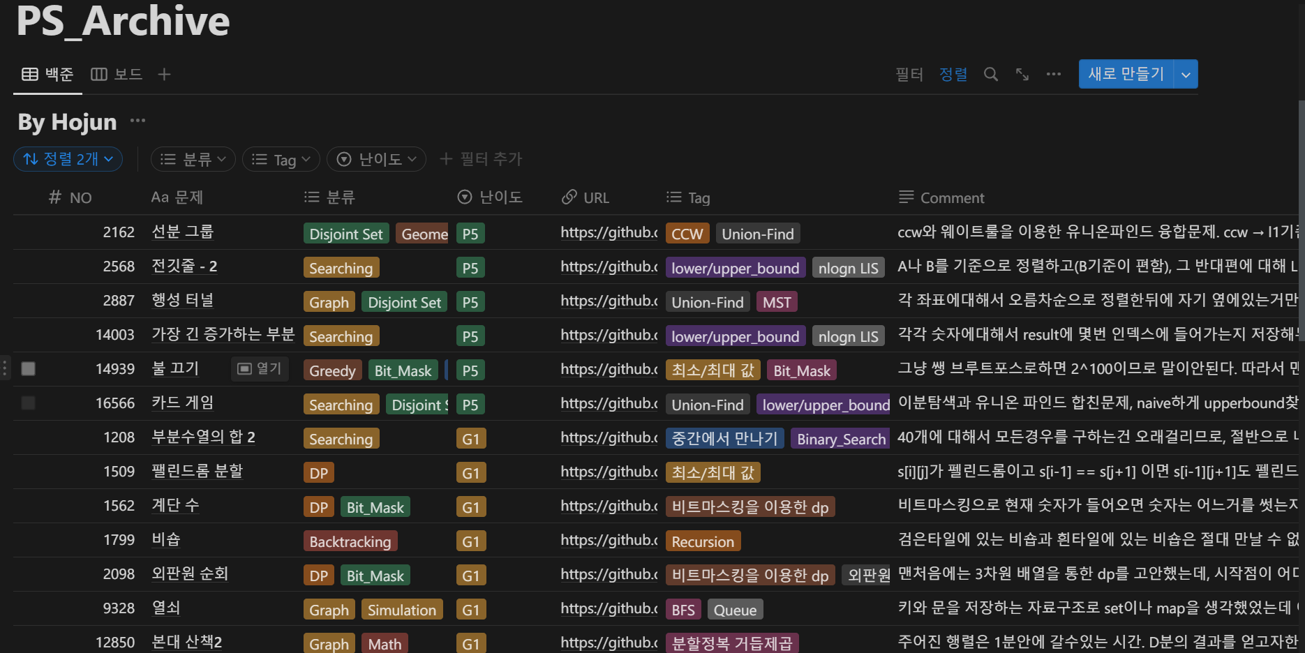 이런식으로 문제들을 아카이빙 해서 모아두었다. 그러면 나중에 보기도 편하고 검색하기도 편해진다.