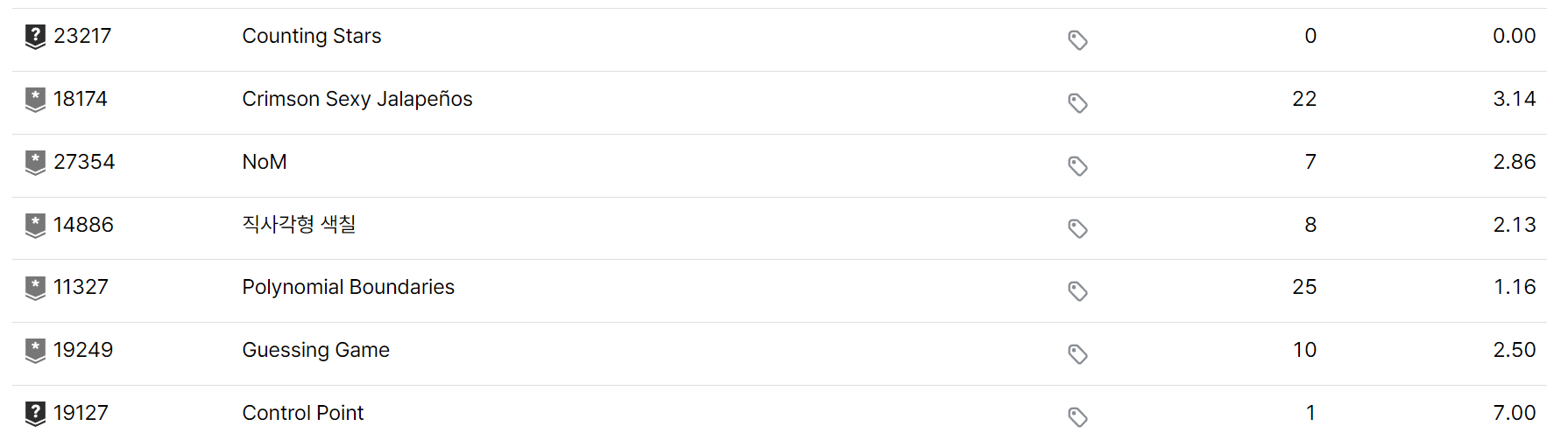 개인적으로 지금 생각하기에는 CLASS문제에 양질의 문제가 엄청 많은 것 같았다. 다양한 알고리즘을 경험해볼 수 있는 문제들이 많다.