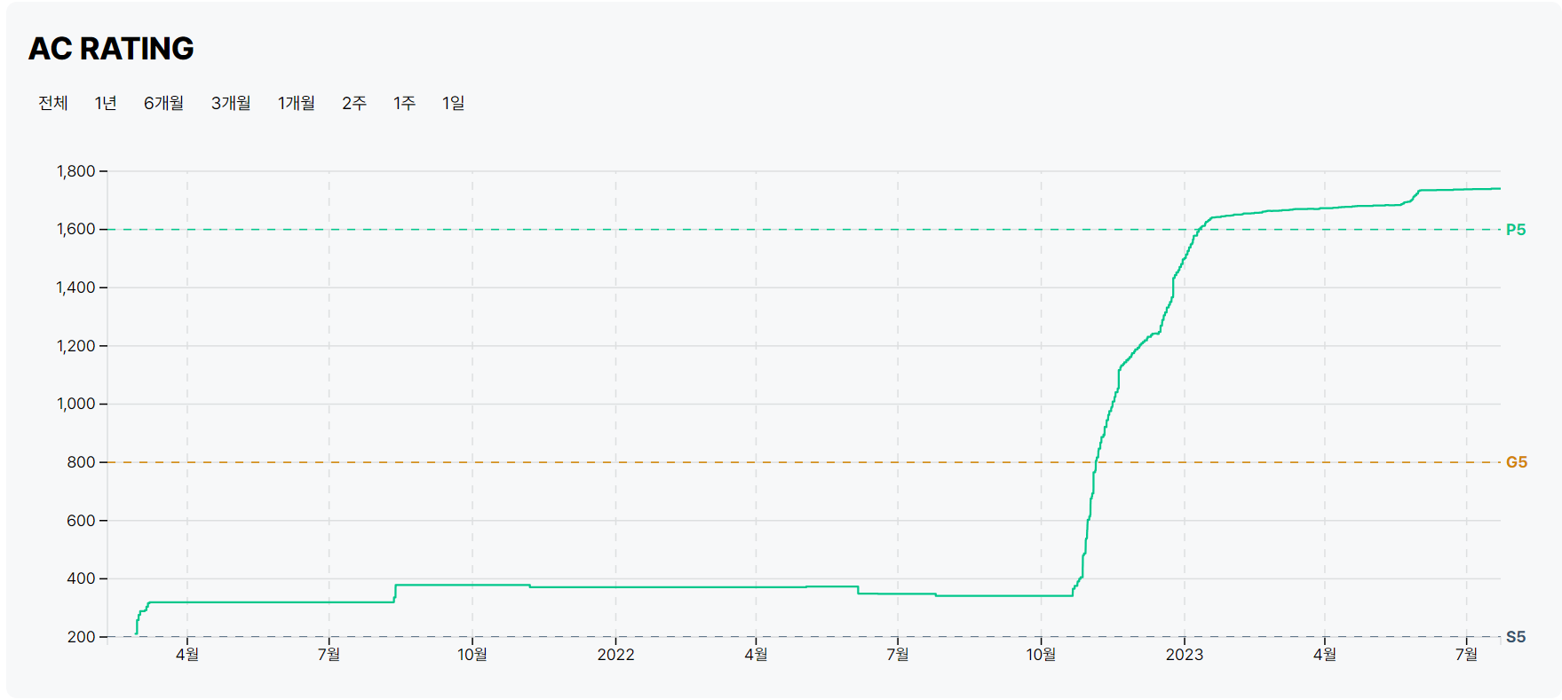 사실 Solved.ac 플레티넘 티어를 달성한지는 꽤 오래되었다. (2023년 1월 달성)