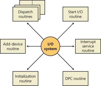 I/O 시스템은 장치 드라이버의 실행을 주도한다. 장치 드라이버는 I/O 요청의 다양한 단계를 처리하기 위해 호출되는 일련의 루틴으로 구성된다.